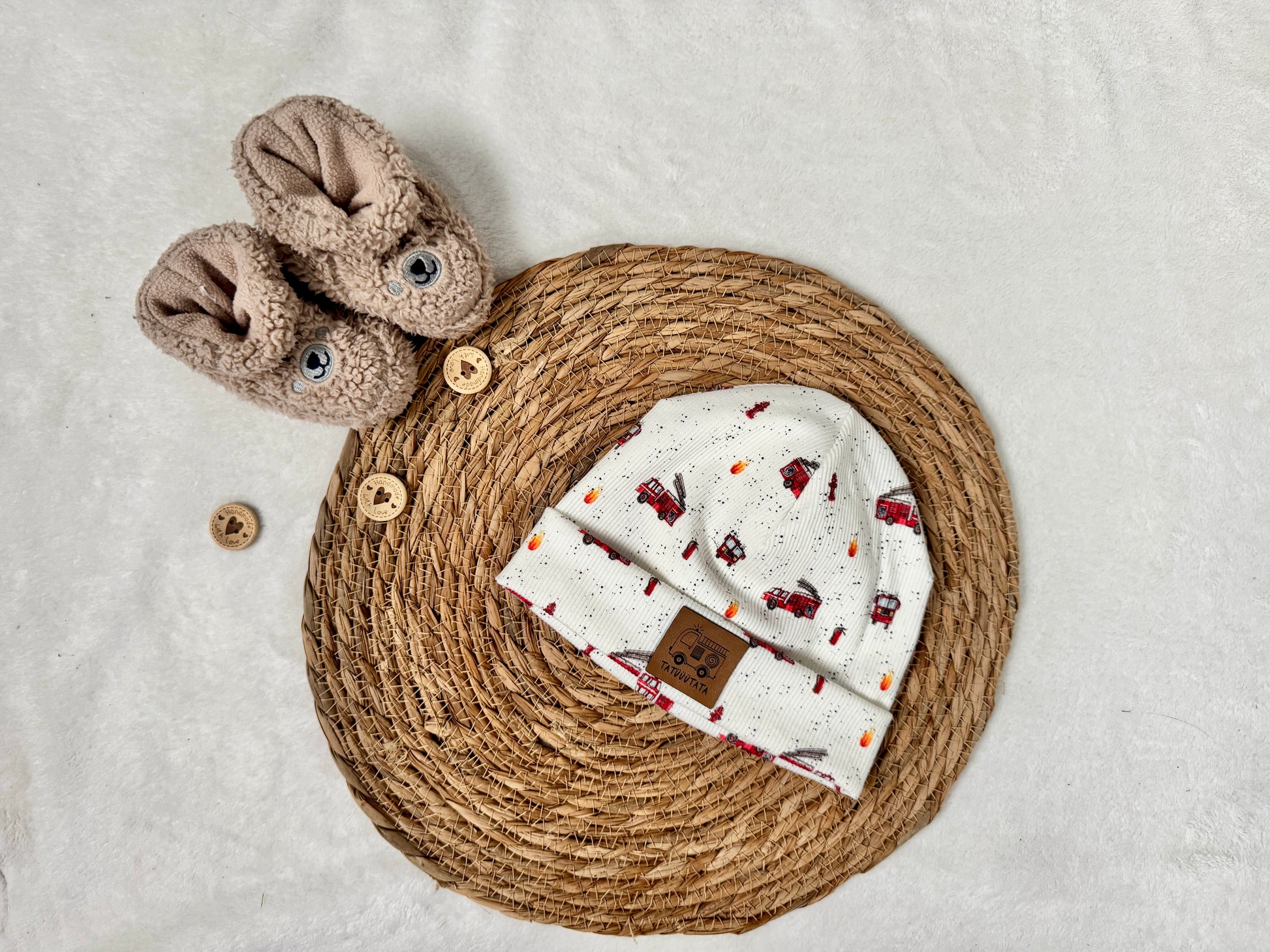 .. super weiche Beaniemütze mit Feuerwehrmotiv, passend für einen Kopfumfang von 45-49cm.