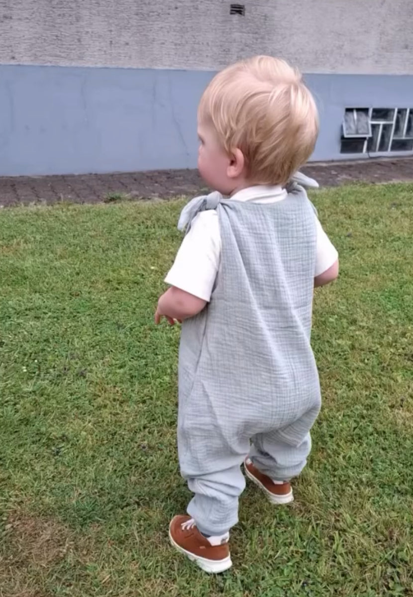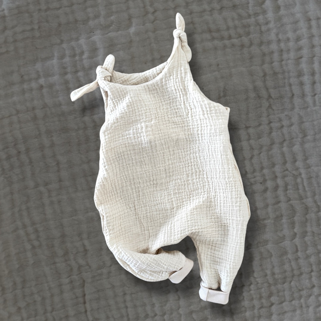 .. dieser luftig, lockere Einteiler aus Musselin (100% Baumwolle) ist der perfekten Begleiter für die heißen Tage. Musselin ist sehr atmungsaktiv. Durch einen Bündchenstoff sind die Beinbündchen hier fest am Körper anliegend. Die Bündchen sind recht großzügig, sodass der Strampler in der Länge mitwachsen kann.