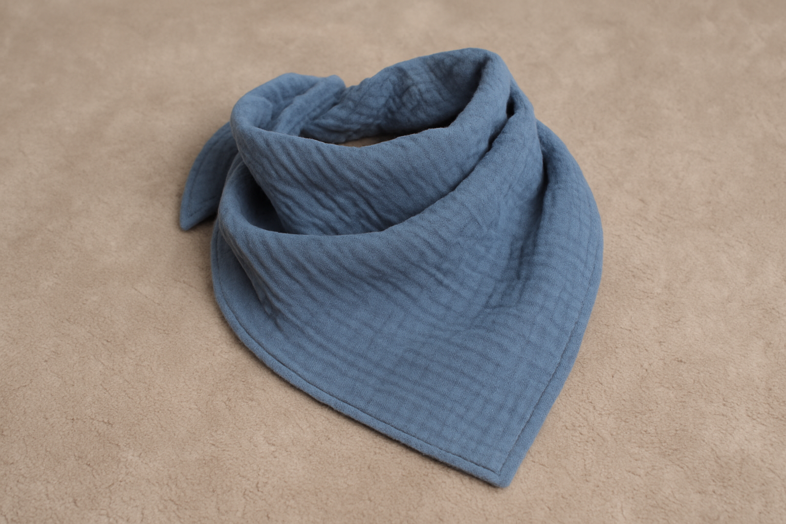 Dieses Halstuch besteht aus hochwertigem, atmungsaktivem Musselin-Stoff (100 % Baumwolle). Der weiche, strukturierte Stoff liegt angenehm auf der Haut und sorgt für ein komfortables Tragegefühl – ideal für Babys und Kinder.