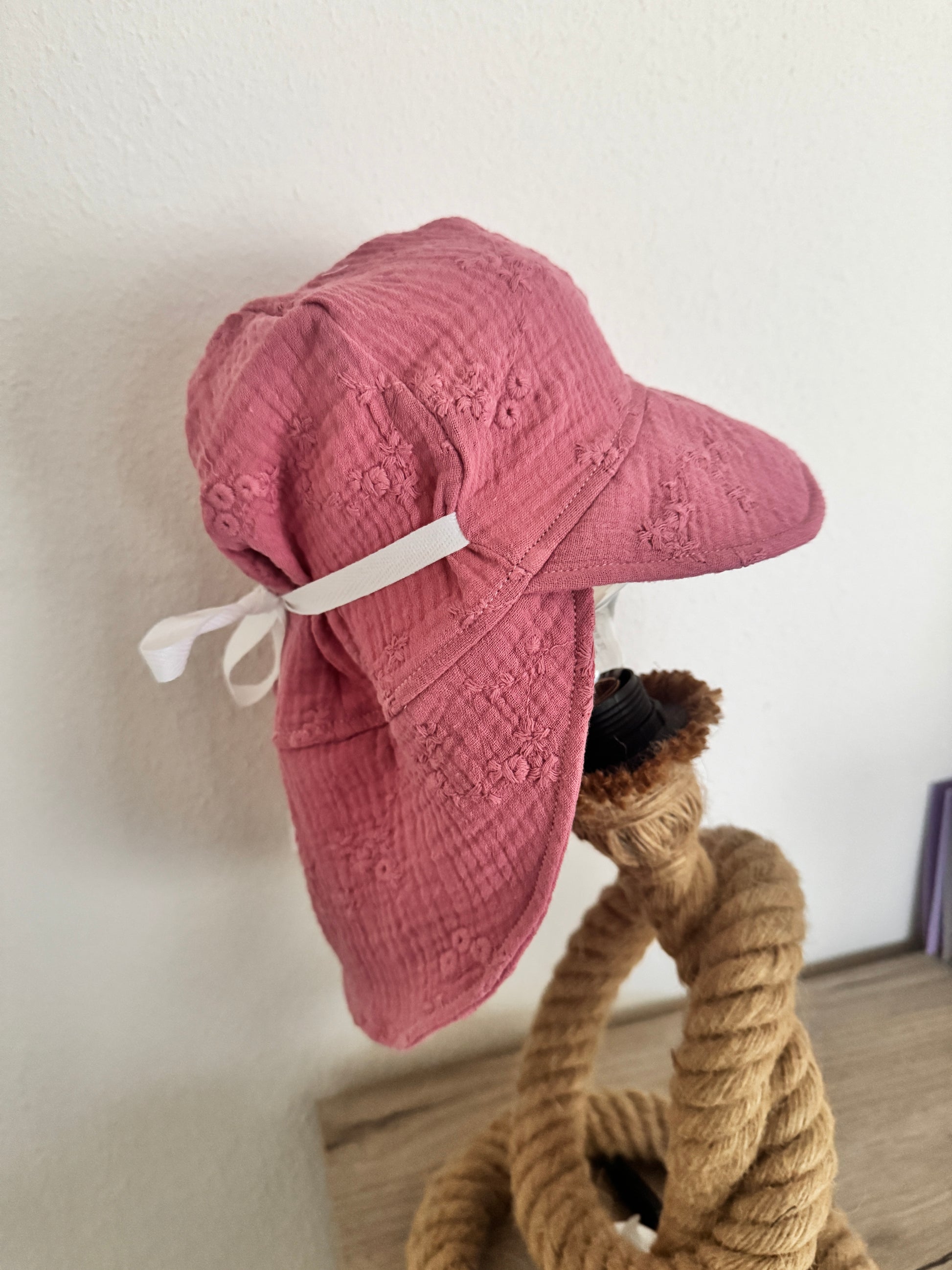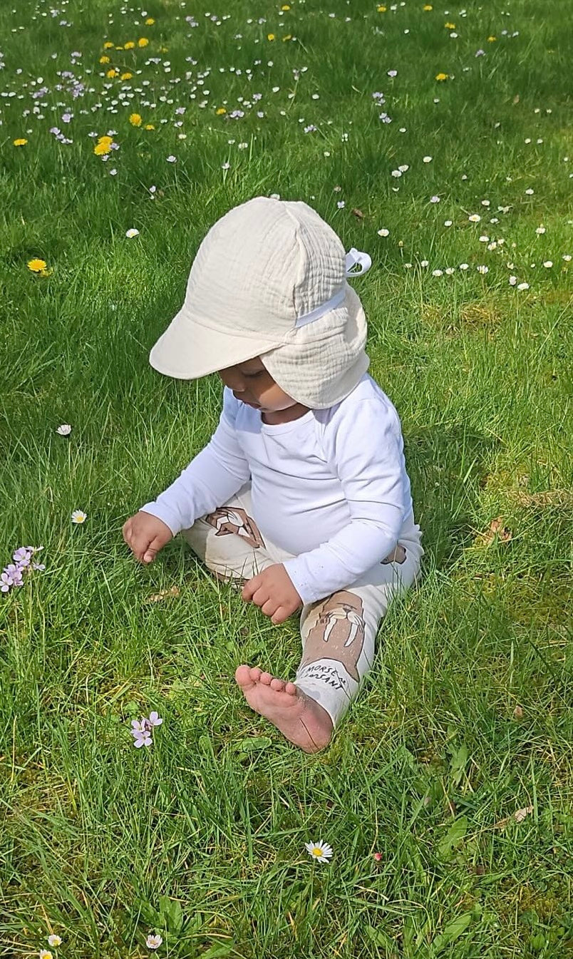 Bin super zufrieden mit den 2 bestellten Mützchen. Passen lange dank dem Band. Perfekt für die sonnigen Tage jetzt und den Urlaub. Bedeckt auch die Ohren mit.