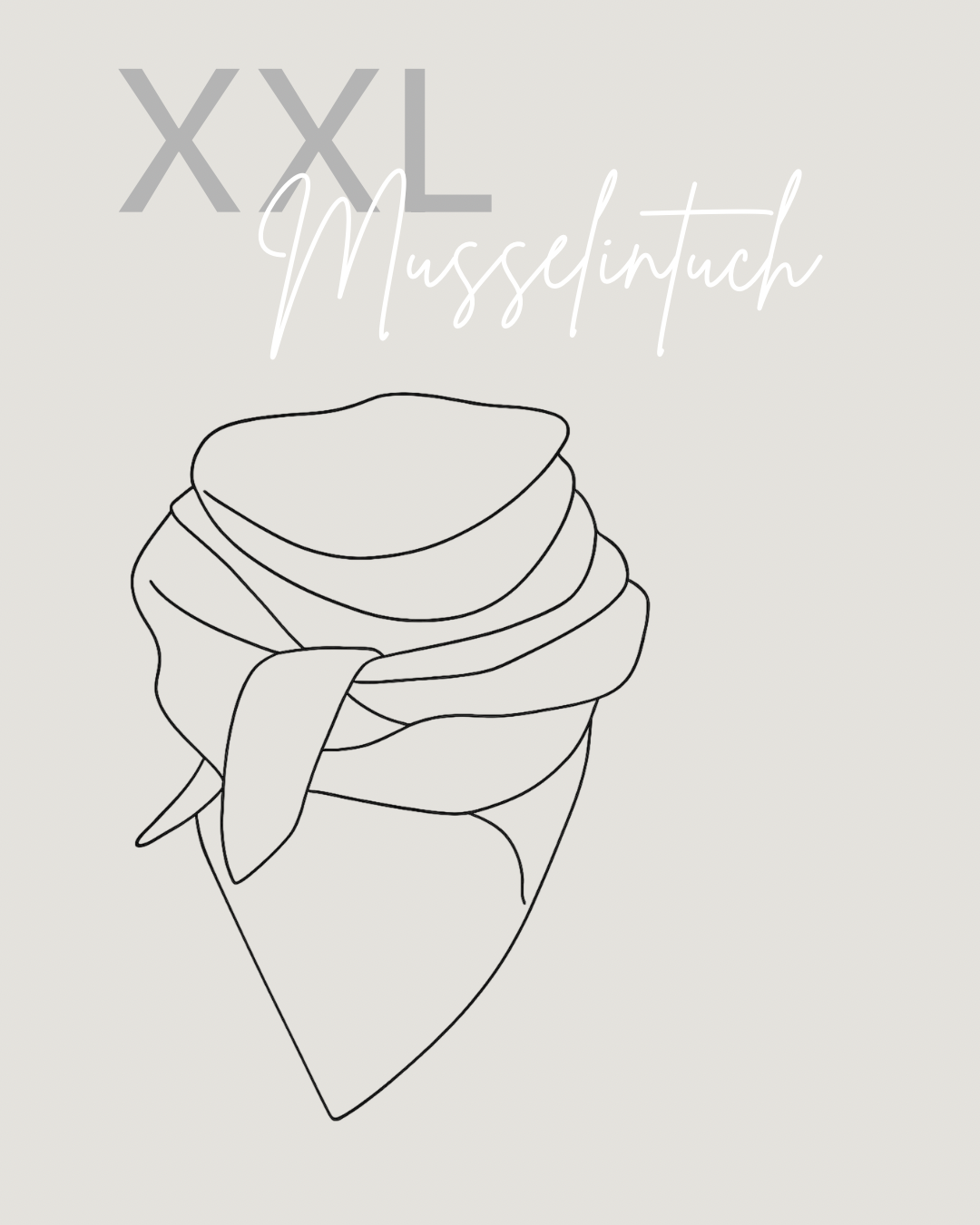 Unser Musselintuch nun auch für Erwachsene als XXL-Version. Die Maße sind ungefähr 1,40m x 1,40m.