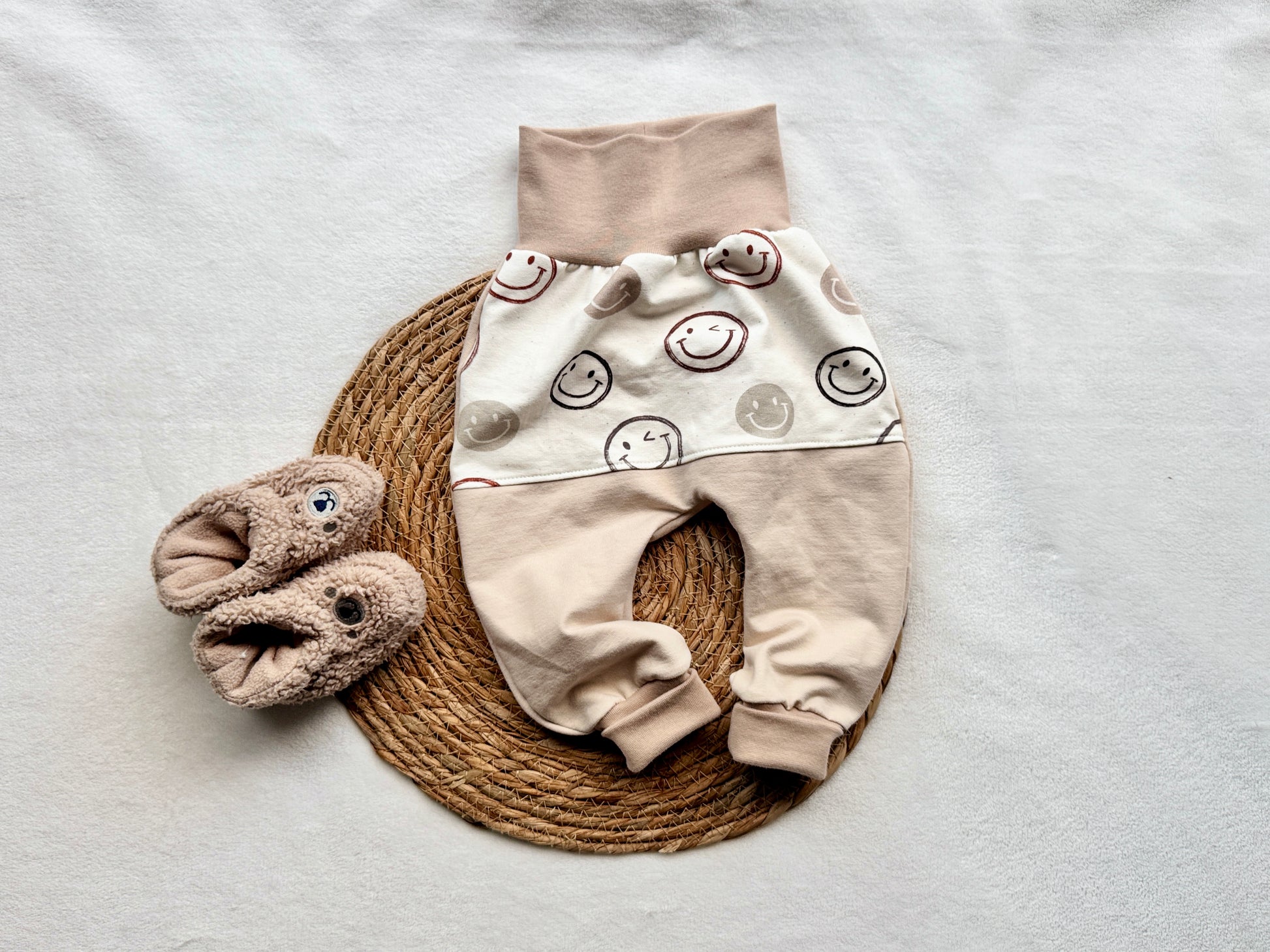 Super lässige Mitwachshose aus einem Baumwollstoff in einem süßen Smileydesign.
