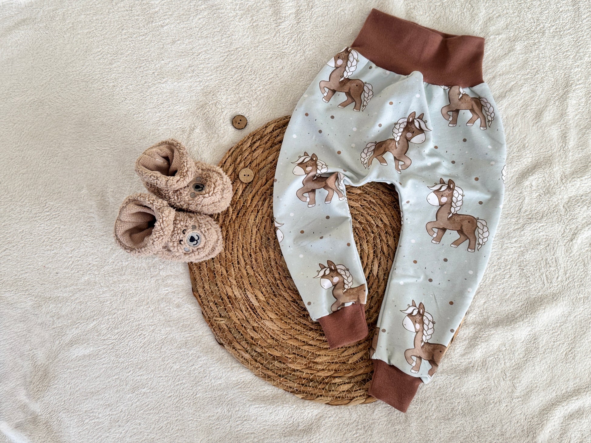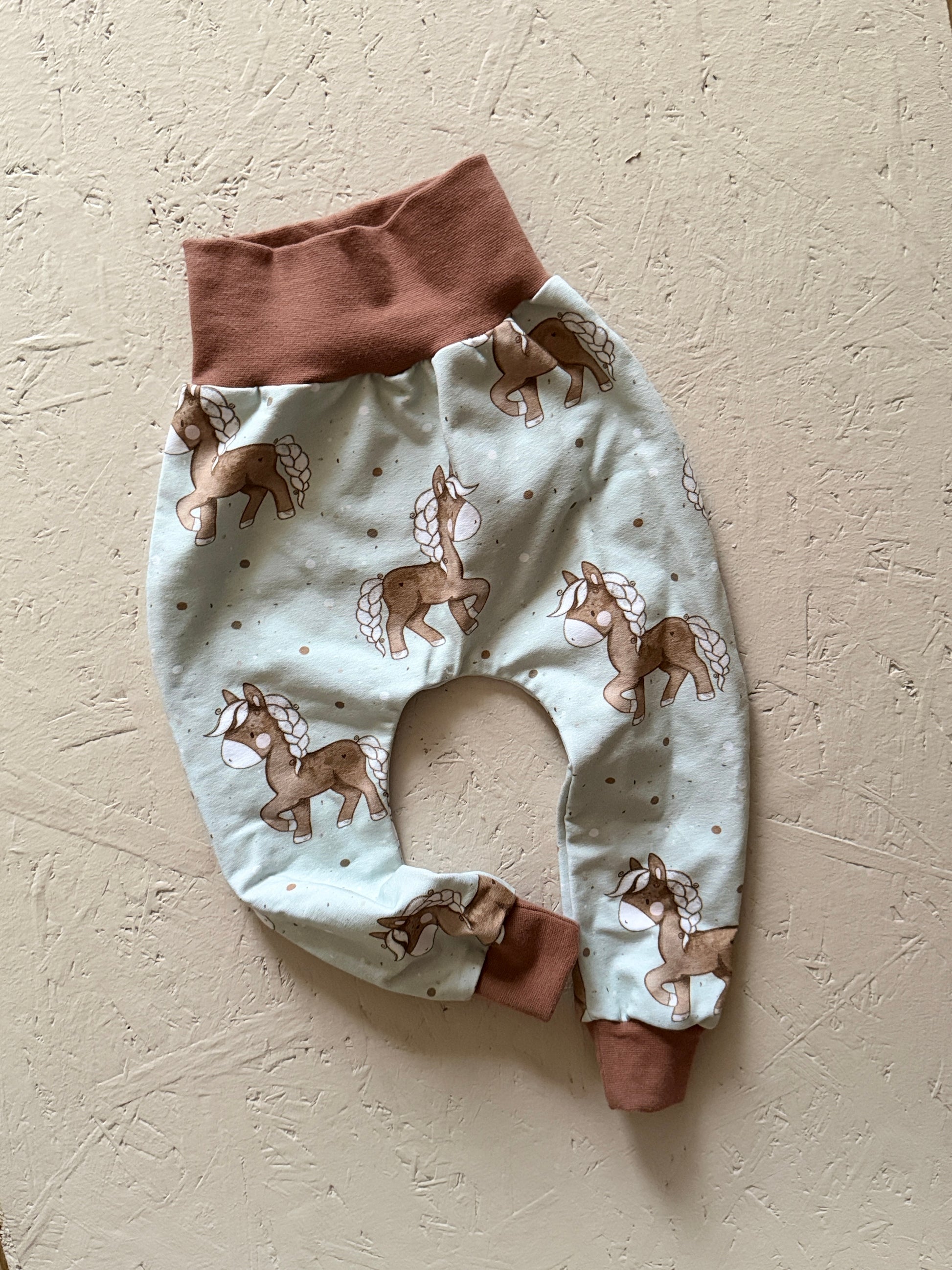 ..süße Pumphose mit passenden Bündchenstoff. Dank großzügig gewählter Bündchen wächst diese Hose über mindestens eine Größe mit.